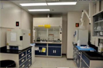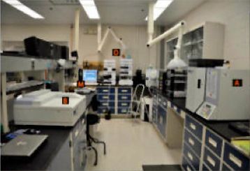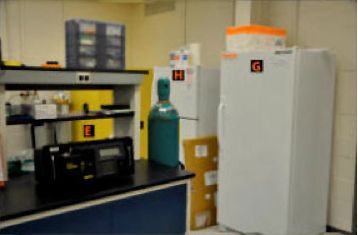 This laboratory consists of two rooms, the main laboratory which includes an interior room dedicated to the HPLC sample processing, and a separate room for the freezers. Below is a mosaic of photographs showing the various instrumentation.